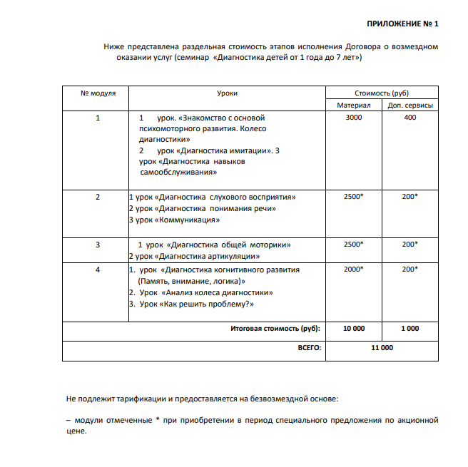 Слушателя (семинар «Диагностика детей от 1 года до 7 лет»), а Заказчик обязуется оплатить